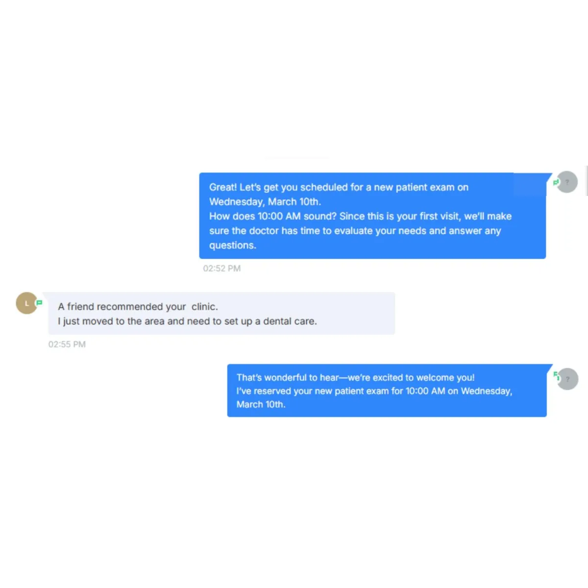 Smart Dental Assistant makes sure that never happens again. It replies to every inquiry in seconds, keeps the conversation going, and books Appointments for you automatically.